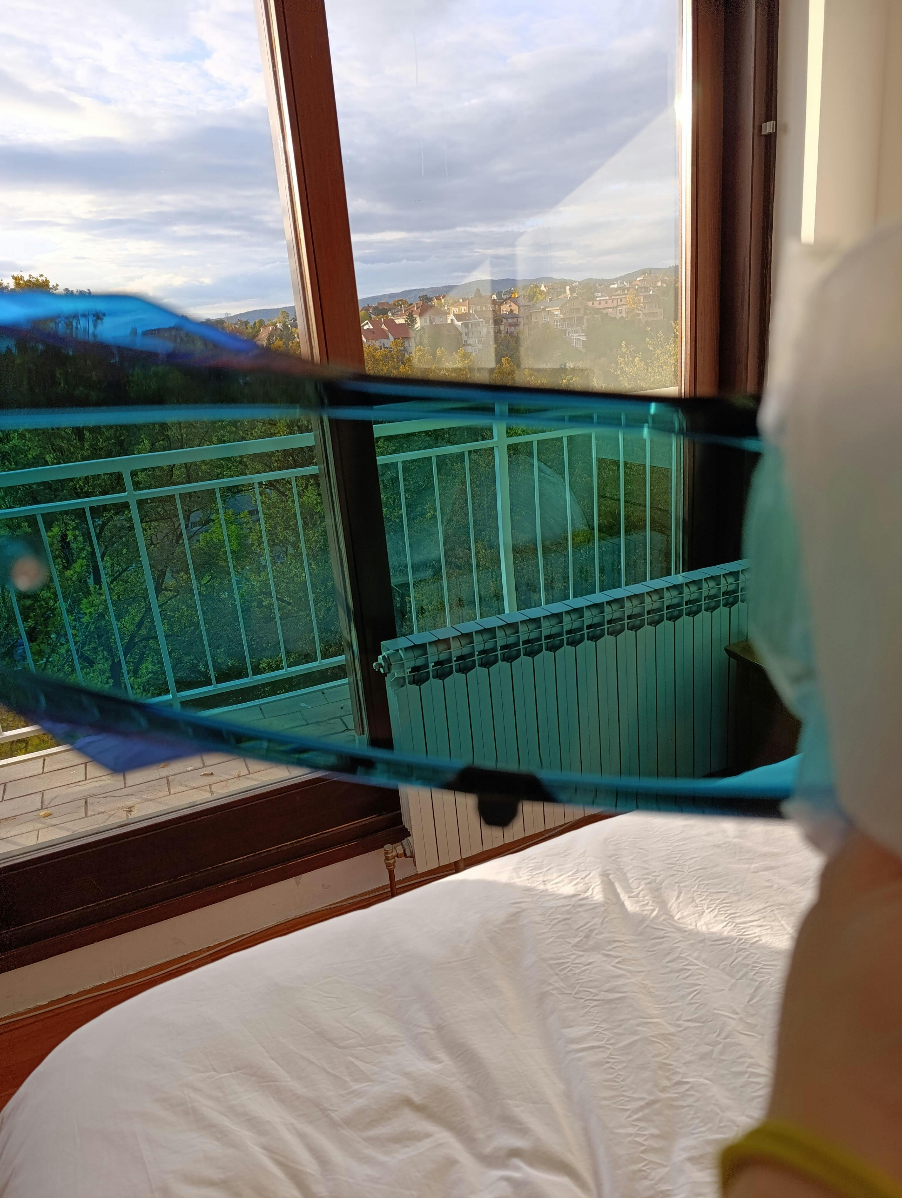 When you look through visor everything is blue tinted